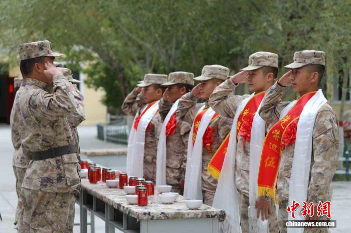 西藏阿里軍分區(qū)某邊防團(tuán)什布奇邊防連9月4日為十余名服役期滿(mǎn)退役的老兵舉行歡送儀式。