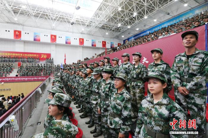 圖為身穿軍訓(xùn)服的新生。西藏大學(xué) 供圖