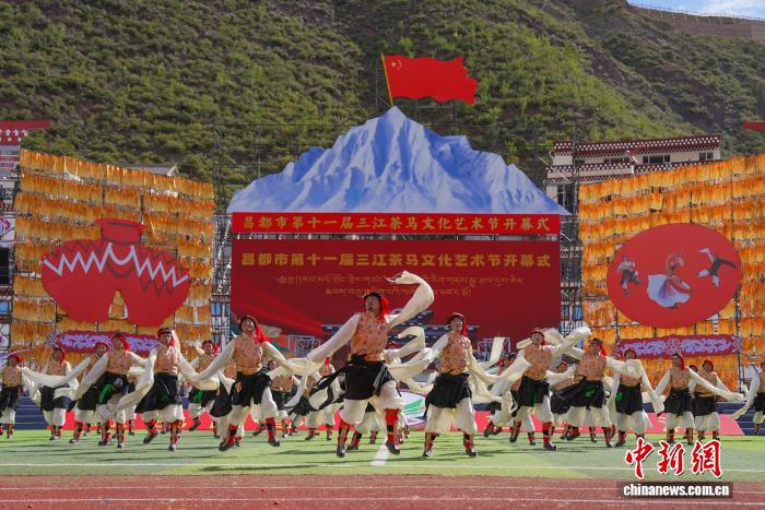 9月15日,西藏自治區(qū)昌都市第十一屆三江茶馬文化藝術(shù)節(jié)在津昌體育文化中心啟幕。開幕式以“紅色昌都 三江潮涌”為主題,由中共昌都市委員會、昌都市人民政府主辦,同步融入慶祝西藏自治區(qū)成立60周年元素,盡顯昌都文化魅力與發(fā)展活力。開幕式現(xiàn)場,來自昌都11縣(區(qū))、身著絢麗節(jié)日盛裝的游行方陣依次登場,各方陣通過特色展演展現(xiàn)地域文化風(fēng)采。隨后,正式文藝表演拉開帷幕,表演共分為“三江奔騰·紅色昌都”“金沙江·紅色起點”“怒江·指尖上的傳承”“瀾滄江·高原上的燈塔”“同心筑夢向未來”五個篇章??蛋臀幕囆g(shù)團、天津青年友好使者藝術(shù)