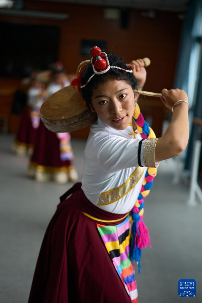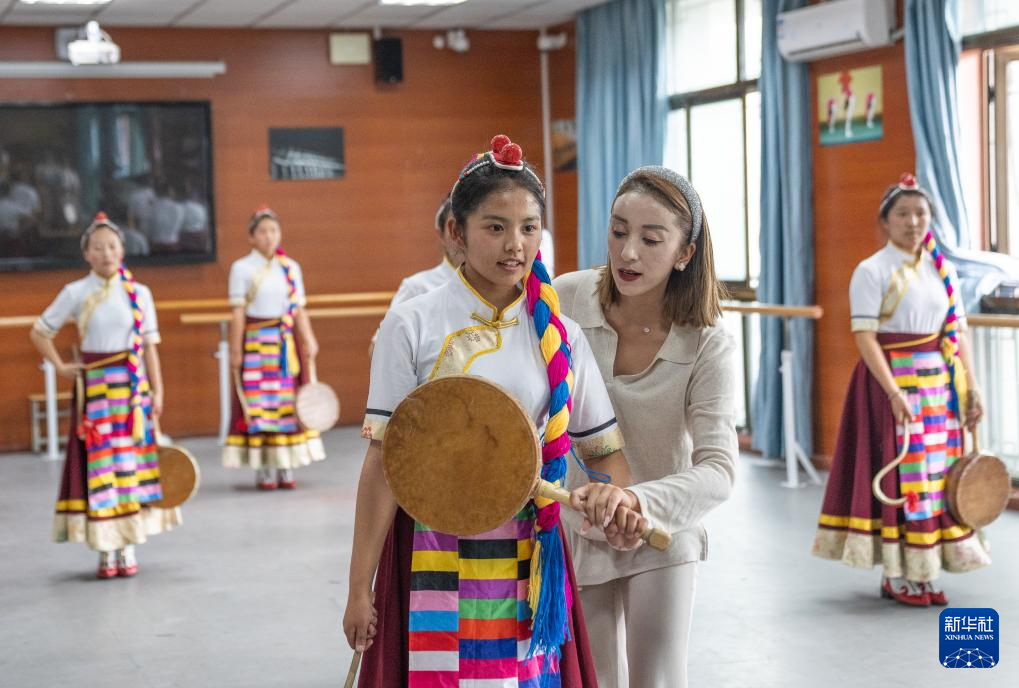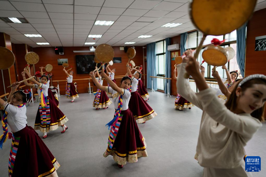9月9日,在拉薩市第二中等職業(yè)技術(shù)學(xué)校,孩子們在練習(xí)熱巴舞。新華社記者 晉美多吉 攝