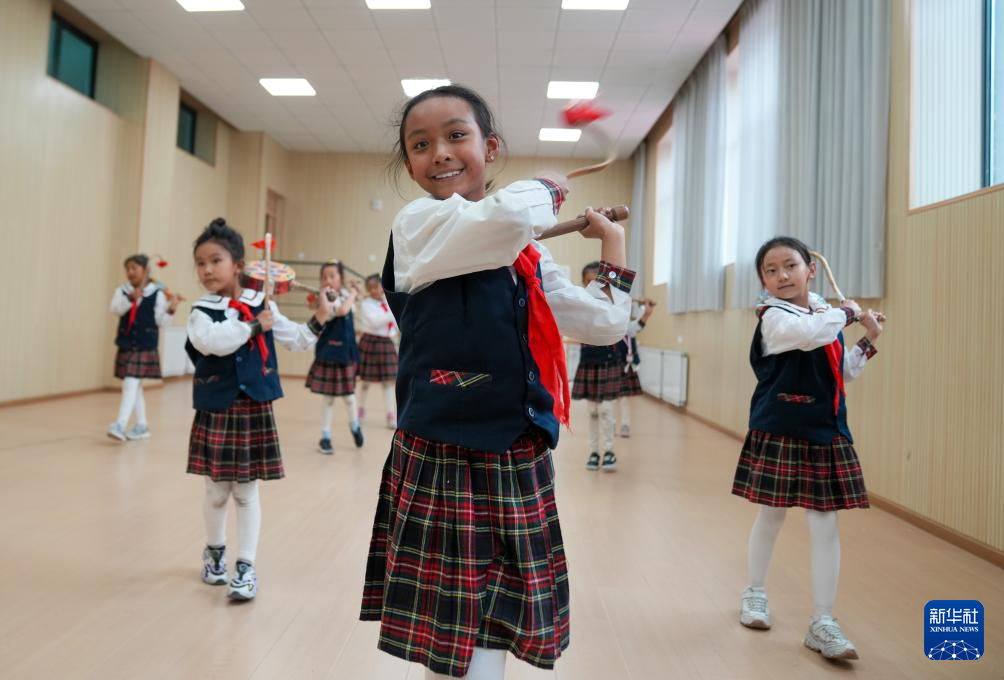 9月11日,在拉薩市實驗小學(xué),孩子們在練習(xí)熱巴舞。新華社記者 晉美多吉 攝