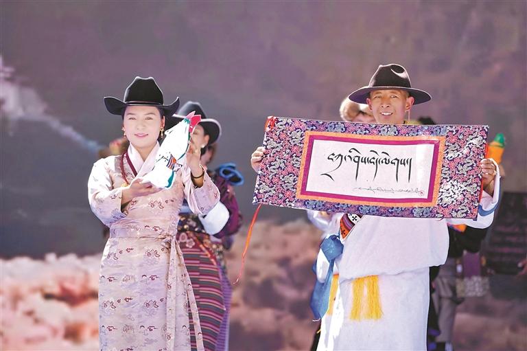 非遺展演秀環(huán)節(jié)中的藏文書法展示。