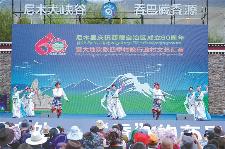 藏香文化旅游節(jié)上的大地歡歌四季村晚行政村文藝匯演。本報(bào)記者 鹿麗娟 攝