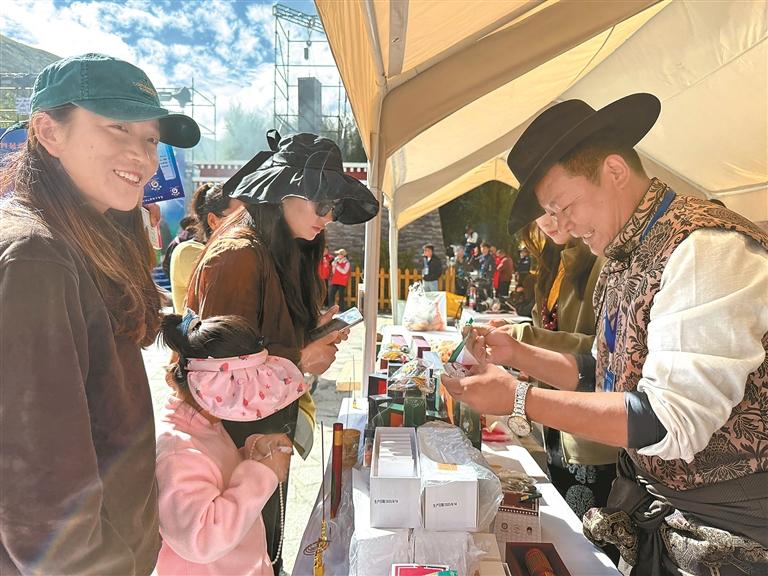 “今天我們帶來了6種藏香文創(chuàng)產(chǎn)品,分別有安神、提神、清潔空氣等系列,這些年我們除了在線下銷售,還要感謝尼木縣委、縣政府積極與線上各大平臺接洽,讓我們的藏香通過線上銷售,走出了尼木,讓北京、南京、天津等城市的客戶通過線上購買。所有藏香都是由縣委、縣政府組織的易地搬遷戶制作,這讓不少群眾不僅能就近就業(yè),還能照顧家里。特別感謝黨和政府對藏香保護(hù)和發(fā)展所做的各項(xiàng)工作。”縣級非物質(zhì)文化遺產(chǎn)傳承人洛桑旺堆在活動現(xiàn)場說。