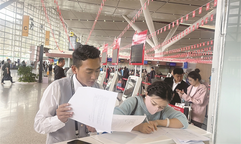 9月14日,萬女士按時(shí)抵達(dá)拉薩貢嘎國際機(jī)場祥鵬航空值機(jī)柜臺。地面服務(wù)工作人員認(rèn)真查看了《動物檢疫合格證明》、寵物疫苗注射證明等材料,迅速為萬女士辦理了相關(guān)乘機(jī)手續(xù)。隨后,工作人員全程提供陪同服務(wù),先與機(jī)場安檢部門積極協(xié)調(diào),幫助萬女士和寵物高效通過安檢;接著引領(lǐng)萬女士登機(jī),并與航班客艙經(jīng)理做好詳細(xì)交接。