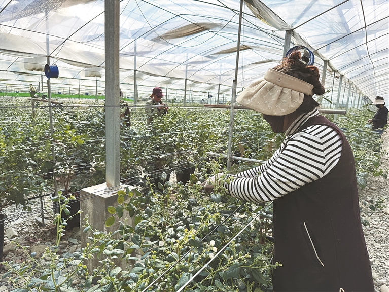 圖為工人在修剪藍(lán)莓的枝葉。記者 巴桑旺姆 攝