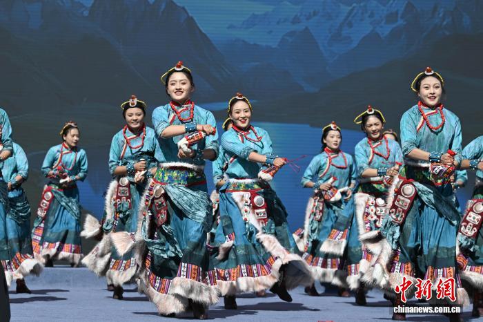 圖為昌都市邊壩縣藝術(shù)團(tuán)表演女子群舞《糌粑揉出幸福情》。中新社記者 貢嘎來(lái)松 攝
