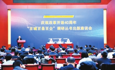 全國社科系統(tǒng)數(shù)千名專家學(xué)者深入100個(gè)縣區(qū)、100個(gè)城市和100個(gè)企業(yè)開展慶祝改革開放40周年大調(diào)研,取得豐碩成果。圖為成果座談會(huì)現(xiàn)場。中國社會(huì)科學(xué)院科研局供圖