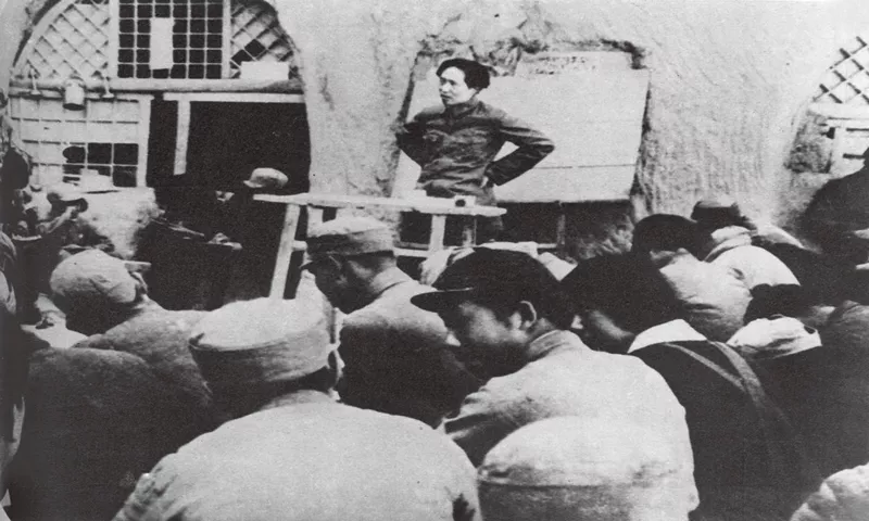 毛澤東非常重視理論聯(lián)系實(shí)際這一馬克思主義學(xué)風(fēng)的養(yǎng)成,強(qiáng)調(diào)必須始終堅(jiān)持把馬克思主義與中國(guó)實(shí)際緊密結(jié)合起來(lái)。圖為毛澤東在為陜北公學(xué)學(xué)員講課。