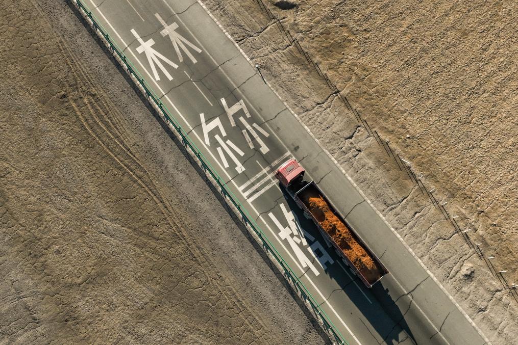 “經(jīng)過改建,如今的鹽橋已經(jīng)與普通柏油路沒有區(qū)別?!鼻嗪J」肪指駹柲竟范味伍L賈國平拿著石碑下方干裂翹起的一片鹽蓋說,路的最下方就是它。這條路從上到下依次是鋪筑的瀝青混凝土面層、水泥穩(wěn)定基層、砂礫層和天然鹽蓋。鹽蓋下方就是深達(dá)10至20米的結(jié)晶鹽和晶間鹵水,公路實(shí)際上就像一座橋浮在鹵水上,就此形成了“車在鹽上走,水在鹽下流”的奇觀。