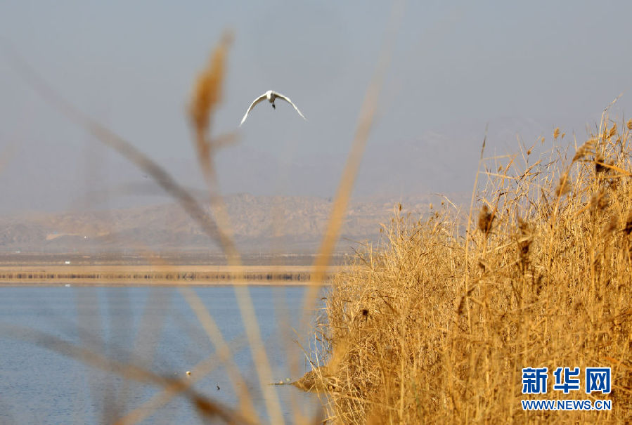 10月28日,一只水鳥飛過可魯克湖。新華社記者 央秀達珍 攝