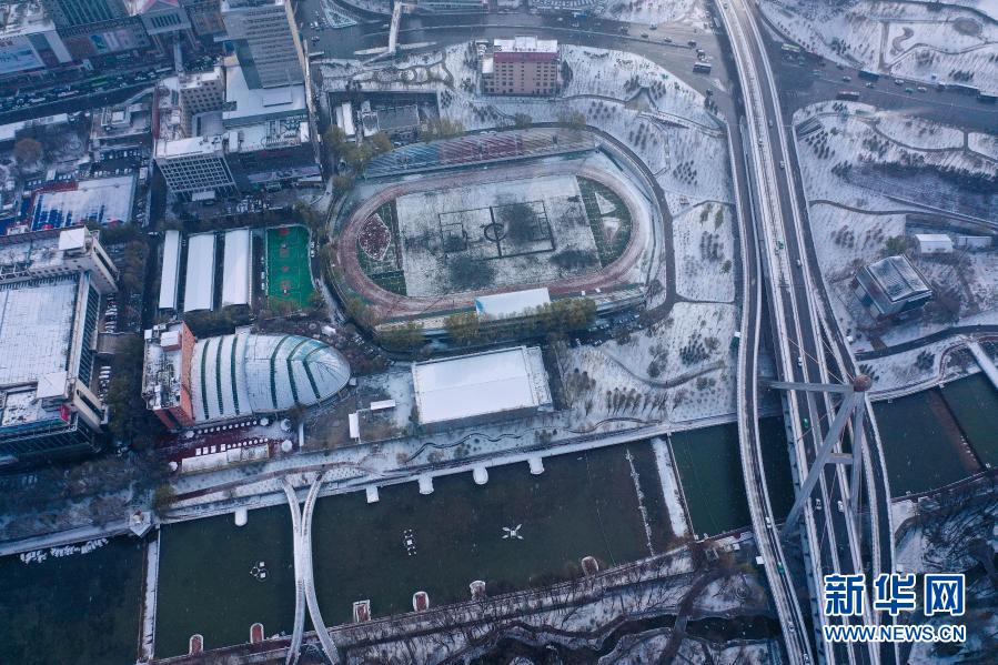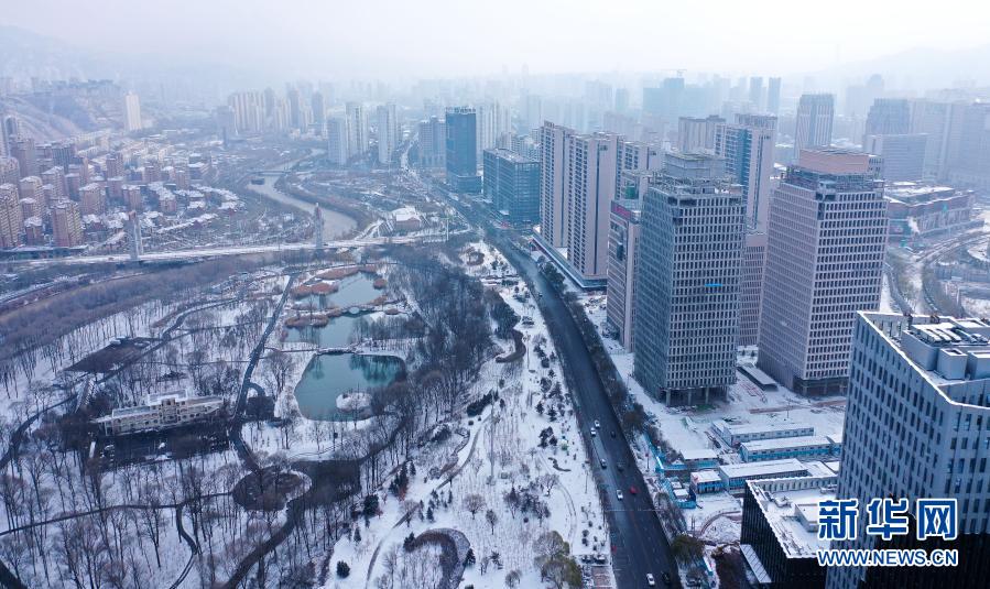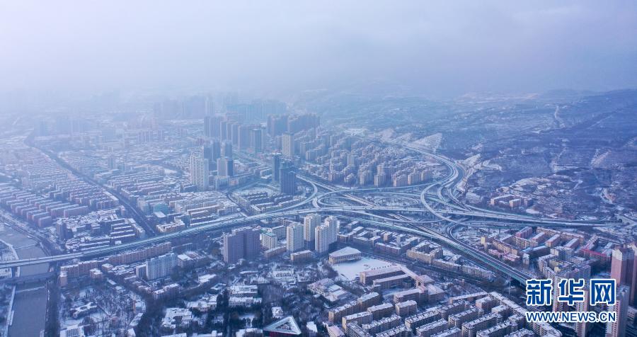 受北方冷空氣影響,11月20日夜間,青海省東北部出現(xiàn)降雪、降溫天氣過程。雪后從空中俯瞰,高原古城西寧被白雪覆蓋。