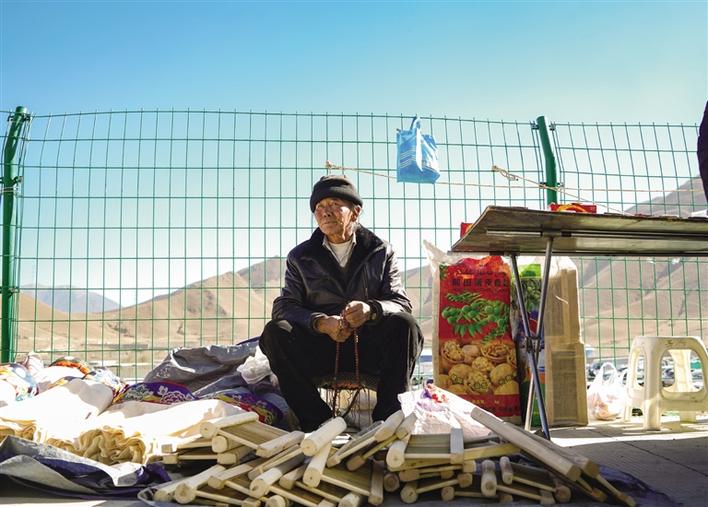“這個(gè)小包好精致,太好看了?!钡┰龅臄偳皣@著一群人?!澳莻€(gè)最小號(hào)的包還有嗎?”“不好意思,都賣完了,您看看其他型號(hào)的吧?!眮?lái)自林芝市朗縣的旦增已經(jīng)是第四次參加物資交流會(huì)了,此次物資交流會(huì)他不僅帶來(lái)了核桃、辣椒、蘋果等當(dāng)?shù)靥厣a(chǎn)品,還帶來(lái)了牦牛皮制作的手工包。