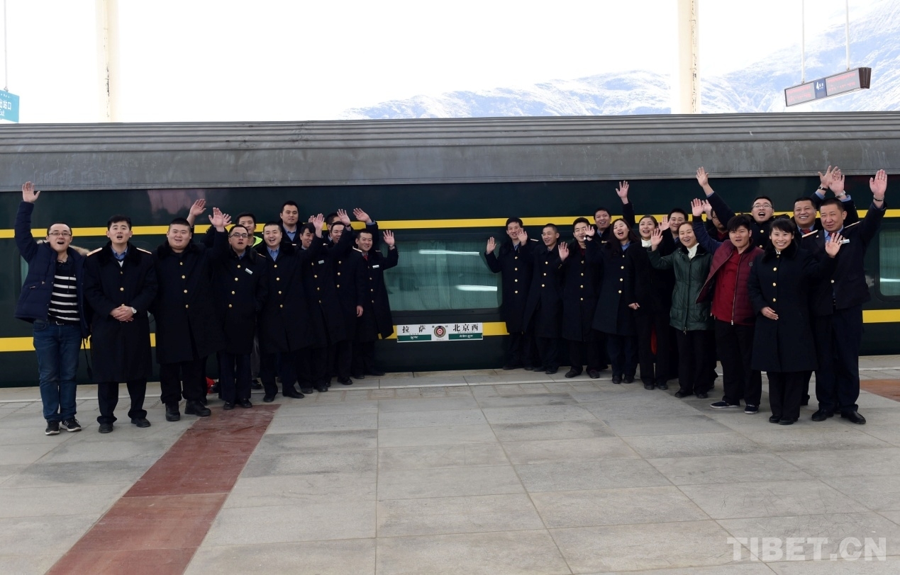 在拉薩火車(chē)站站臺(tái)上,我與乘務(wù)員們眼噙淚水,與無(wú)數(shù)次行駛在藏北高原的列車(chē)拍照留念。為優(yōu)化進(jìn)藏列車(chē)運(yùn)行線路,推進(jìn)東北地區(qū)等老工業(yè)基地的振興,從2016年2月1日至5日,京藏列車(chē)的5個(gè)車(chē)體由北京鐵路局移交沈陽(yáng)鐵路局,整趟列車(chē)線路以后延伸至沈陽(yáng),北京改為經(jīng)停站。2017年,這趟列車(chē)又移交給了青藏鐵路公司負(fù)責(zé)運(yùn)行。