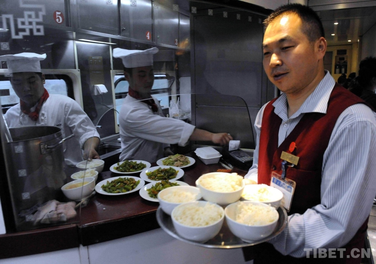 這趟列車(chē)的廚師長(zhǎng)孫冠軍告訴記者,京藏列車(chē)自開(kāi)通運(yùn)營(yíng)以來(lái),除了像西紅柿炒雞蛋因藏北高原沸點(diǎn)低而無(wú)法炒成片外,其他三四十種可口飯菜都能在列車(chē)運(yùn)行中的高海拔地段完成。