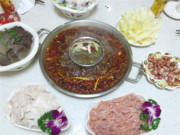 “重慶火鍋的特色全在鍋底。我們店主打冷鍋、一次性紅湯鍋,還有鍋中鍋的菌湯、番茄養(yǎng)生湯、酸蘿卜老鴨湯。這些鍋底能很好地吸收其他炒料的味道,在燙煮的時(shí)候,可以黏附在食物上,吃起來(lái)味道‘開門見山’,濃香熱辣,但又不會(huì)讓人覺(jué)得嗆喉嚨,下到胃里也沒(méi)有燒胃的感覺(jué),湯底吃到最后還能保持清亮的本色……”重慶巴王府火鍋店長(zhǎng)楊女士自信地說(shuō)。