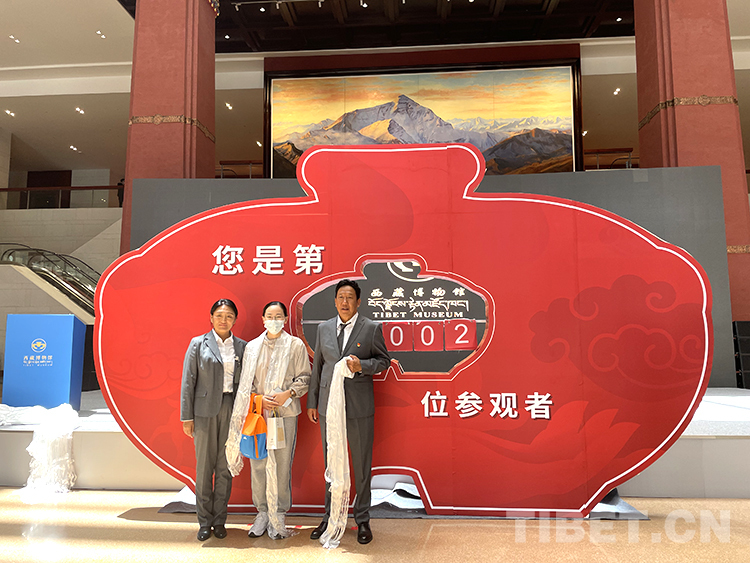 13時,西藏博物館新館正式對外開放。8歲小朋友陳芃璋成為新館的第一位觀眾。他介紹,自己是跟隨父母從江蘇蘇州過來旅游的?!昂軜s幸成為第一位觀眾,來這里主要是開闊眼界?!标惼M璋說。