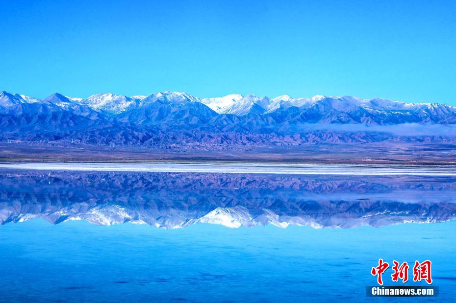 深秋已至,位于青藏高原的茶卡鹽湖,湖水逐漸純凈,鹽層開始結(jié)晶,平靜的湖面如同一面天然鏡子,反射著美麗的天空與遠(yuǎn)處的雪山,形成水天一色的景象。茶卡鹽湖位于柴達木盆地的青海省海西蒙古族藏族自治州烏蘭縣茶卡鎮(zhèn)境內(nèi)。湖面海拔約3100米,湖面面積105平方公里。這里歷史悠久,文韻悠長,是中國鹽文化發(fā)源地之一,是天然的結(jié)晶鹽湖。由于湖面結(jié)晶鹽層上鹵水的反射形成鏡面效果,水天倒映,美不勝收,被稱為中國版“天空之鏡”。圖為水天一色景致。 王生榮 攝