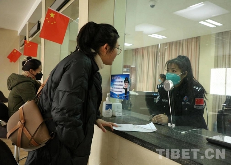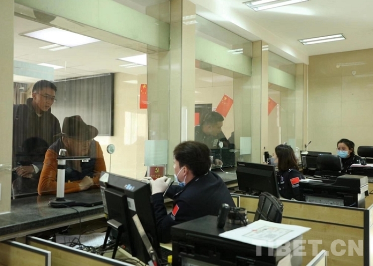 圖為藏歷新年期間民警為游客群眾辦理邊境通行證 攝影:徐錫萬
