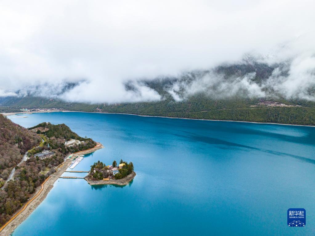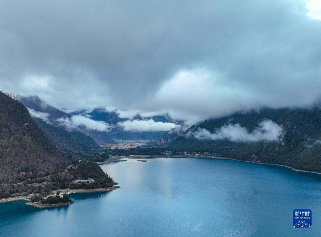 4月17日拍攝的巴松措(無(wú)人機(jī)照片)。新華社記者 曹檳 攝