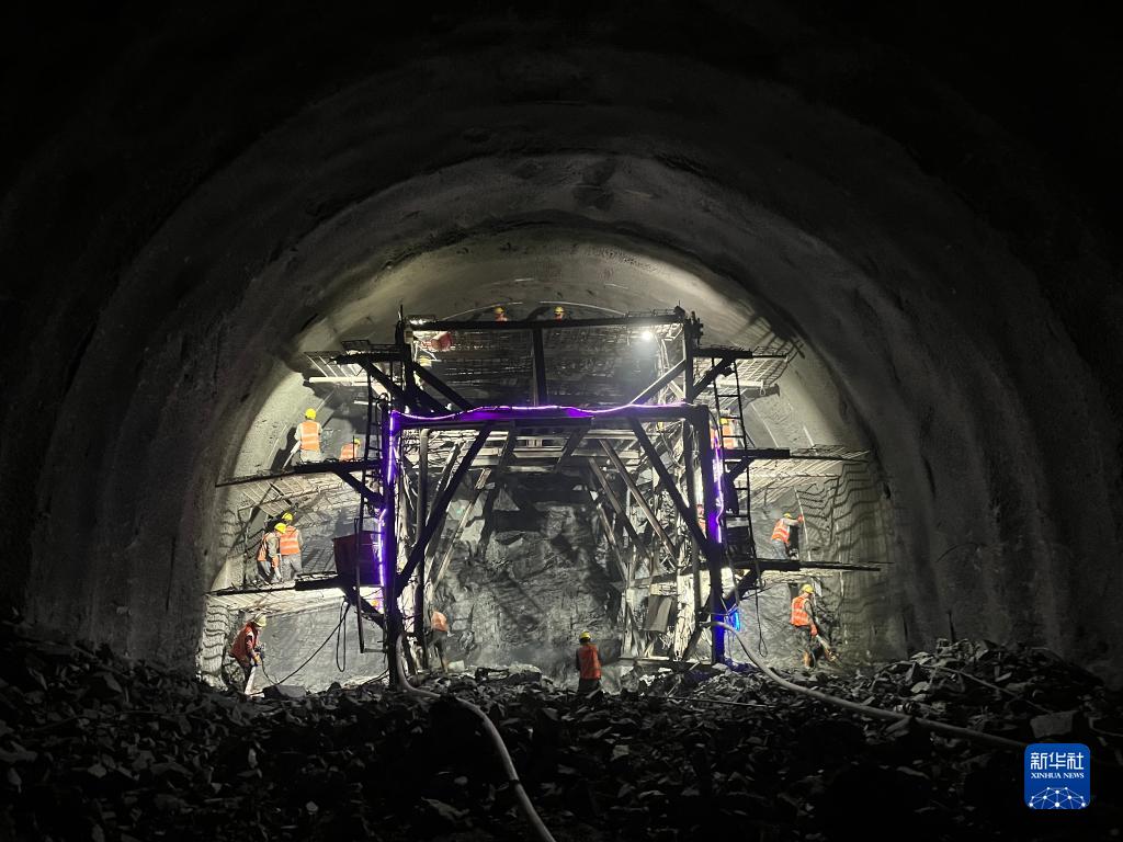 工人們正在西藏S5線拉薩至澤當(dāng)快速路圭嘎拉隧道內(nèi)進(jìn)行爆破鉆孔打眼作業(yè)。新華社記者劉洪明 攝