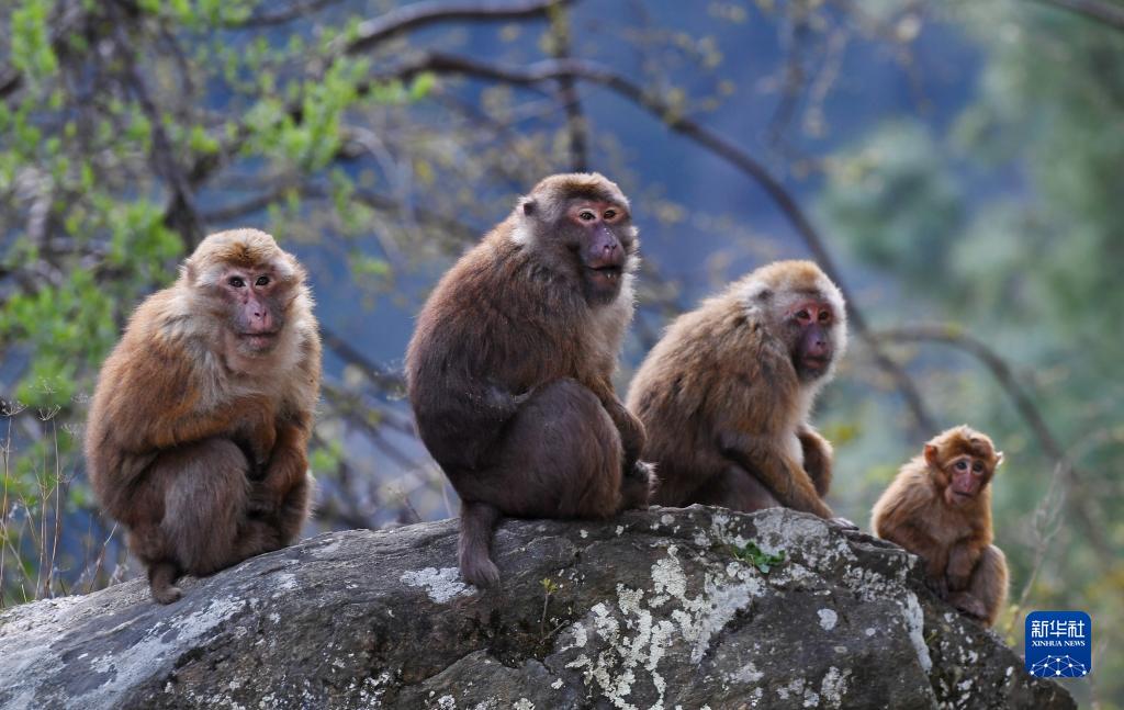 勒布溝里的獼猴(4月25日攝)。新華社記者 張汝鋒 攝