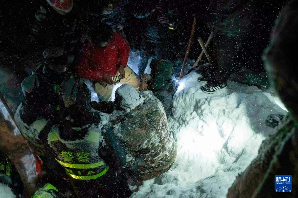 雪崩夜,民警徒手刨雪救援。(受訪者供圖)