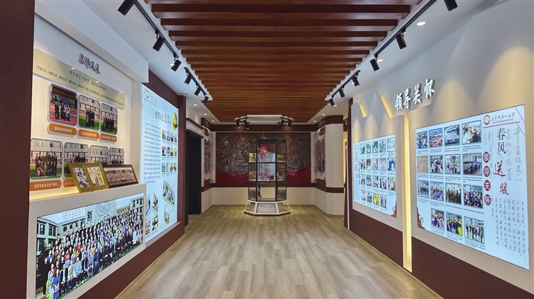 紅領(lǐng)巾講解員楚成白姆指著老照片介紹道:“這是學(xué)生當(dāng)時加入少先隊時的情景,這是學(xué)校成立時的教室畫面,這張是建校初期教師自編的教材圖片?!痹谏鲜兰o(jì)七八十年代,學(xué)校組織學(xué)生成立了腰鼓隊、舞蹈隊等,學(xué)生們經(jīng)常登上大型活動的舞臺,用精彩的文藝表演展現(xiàn)著青春風(fēng)采。