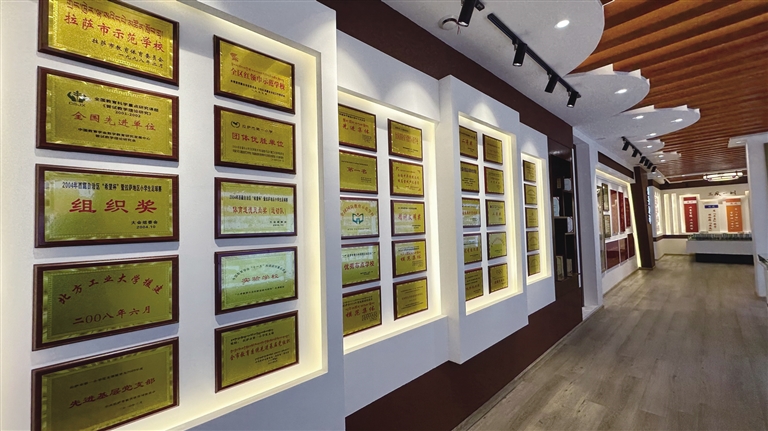 在校史館的圖片墻上,學(xué)校舉行“六一”文藝演出的照片吸引了記者的注意。從1985年羅布林卡黑白照片里孩子們歡快表演的身影,到上世紀(jì)90年代初宗角祿康公園彩色照片中孩子們慶?!傲弧眹H兒童節(jié)的文藝表演,再到1992年至2012年間,學(xué)校舉辦慶?!傲弧眹H兒童節(jié)文藝演出。20年間,學(xué)校進(jìn)一步豐富特色教育,設(shè)有管樂隊、民樂特長班、手工特長班、美術(shù)特長班等,并組織管樂隊學(xué)生在布達(dá)拉宮廣場參加各類活動,為學(xué)生全面發(fā)展搭建起更廣闊的展示平臺。