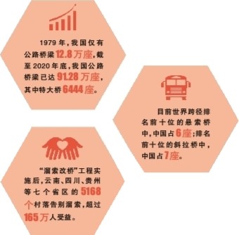 截至2020年年底,我國公路橋梁達(dá)91.28萬座,其中特大橋6444座,不論在長江、黃河等大江大河,還是泉州灣等海灣地區(qū),一座座施工難度大、技術(shù)含量高、在世界橋梁建設(shè)中具有代表性的橋梁成為閃亮的“中國名片”。