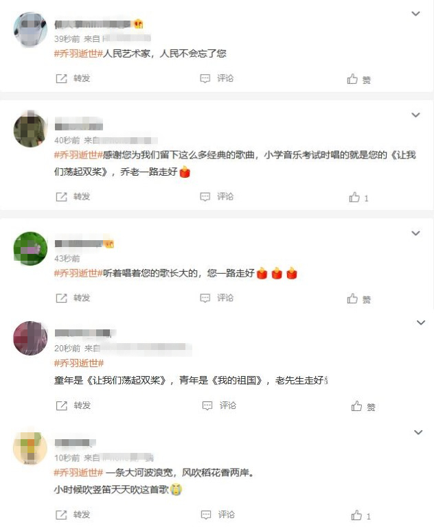 李谷一在聽聞喬羽逝世的消息后,第一時間發(fā)文悼念:“難忘我的喬老爺!我敬重、熱愛的合作伙伴!人世間雖再無他的身影,但他高尚愛國愛民的精神,樸實無華、善良可愛幽默的人品性格,無人能超越的偉大藝術(shù)才能和作品卻永遠(yuǎn)留存在人世間,留存在億萬人的心中!喬羽老爺子我永遠(yuǎn)想念您,一路走好!”