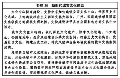 綜合城市功能定位和經(jīng)濟社會發(fā)展,建設(shè)傳統(tǒng)文化和現(xiàn)代文化交相輝映、城市氣質(zhì)與人文精神相得益彰的現(xiàn)代城市文化。強化各類規(guī)劃中文化建設(shè)的剛性約束,保護歷史文化遺產(chǎn),融合時代文明,構(gòu)建城市文化精神,發(fā)展城市主題文化,營造特色文化景觀。以文化建設(shè)帶動城市建設(shè),提升城市文化品位、整體形象和發(fā)展品質(zhì)。加快建設(shè)一批有全國影響力的文化中心城市、特色文化強市。支持相關(guān)?。ㄗ灾螀^(qū)、直轄市)建設(shè)一批具有代表性的區(qū)域文化中心城市和特色文化城市。結(jié)合新型城鎮(zhèn)化建設(shè),鼓勵因地制宜發(fā)展一批承載歷史記憶、體現(xiàn)地域特征、富有民族特色的美麗城鎮(zhèn)。