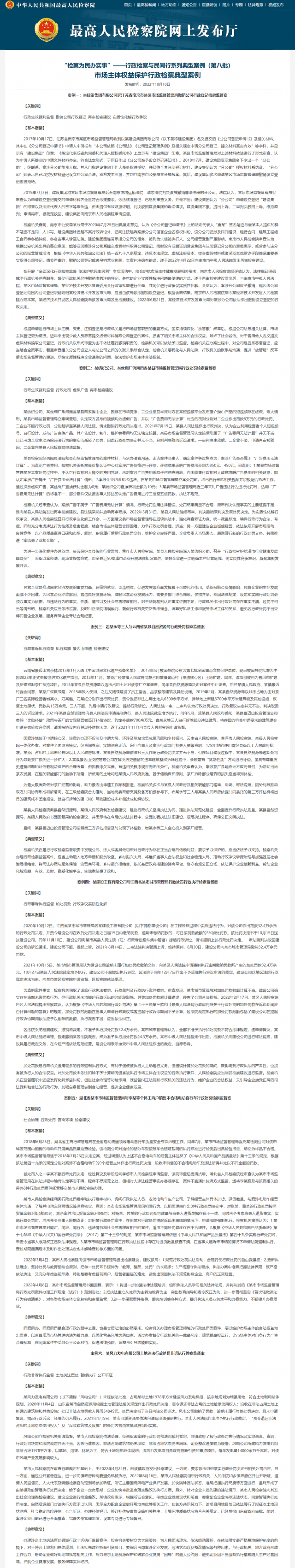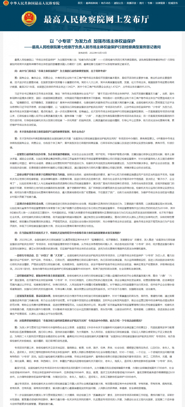 央視網(wǎng)消息:據(jù)中華人民共和國(guó)最高人民檢察院網(wǎng)站消息,10月10日,最高人民檢察院以“市場(chǎng)主體權(quán)益保護(hù)”為主題發(fā)布第八批“檢察為民辦實(shí)事”——行政檢察與民同行系列典型案例。