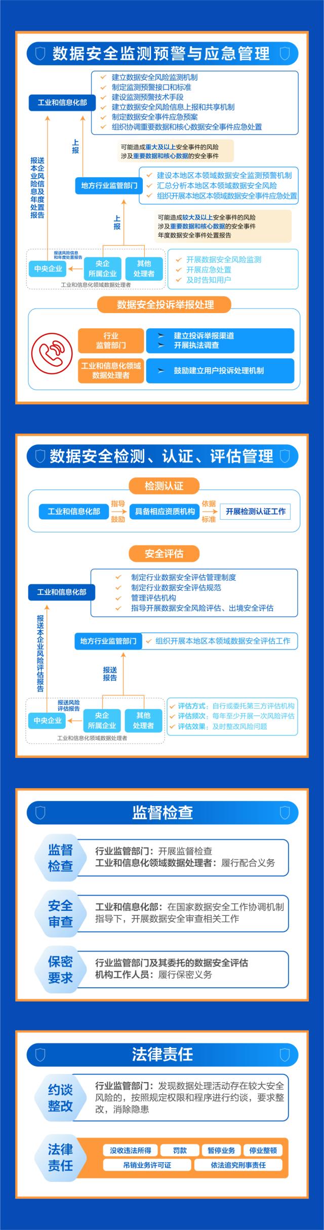 《管理辦法》以數(shù)據(jù)分級(jí)保護(hù)為總體原則,要求一般數(shù)據(jù)加強(qiáng)全生命周期安全管理,重要數(shù)據(jù)在一般數(shù)據(jù)保護(hù)的基礎(chǔ)上進(jìn)行重點(diǎn)保護(hù),核心數(shù)據(jù)在重要數(shù)據(jù)保護(hù)的基礎(chǔ)上實(shí)施更加嚴(yán)格保護(hù)。對(duì)于不同級(jí)別數(shù)據(jù)同時(shí)被處理且難以分別采取保護(hù)措施的,采取“就高”原則,按照其中級(jí)別最高的要求實(shí)施保護(hù)。