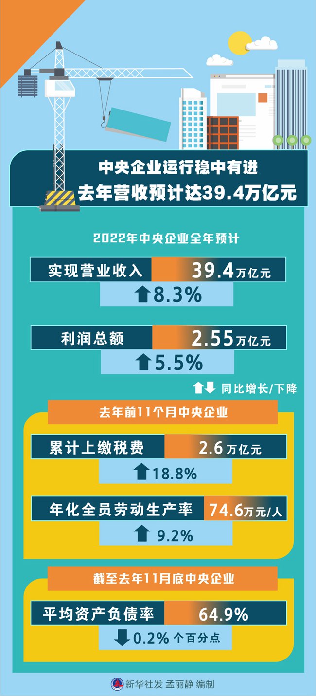 中央企業(yè)運行穩(wěn)中有進 去年營收預計達39.4萬億元
