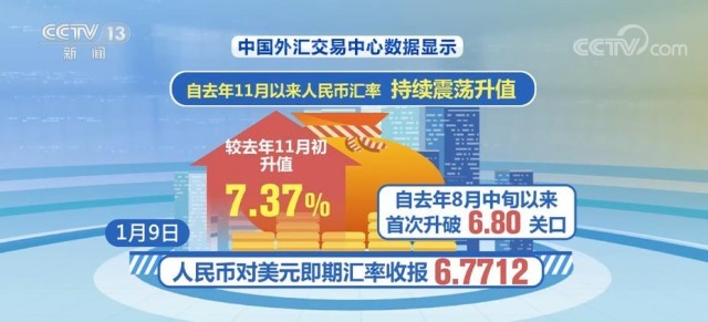 從去年底到今年開年至今,人民幣匯率走出了一波反彈回升行情。中國外匯交易中心數(shù)據(jù)顯示,自去年11月以來人民幣匯率持續(xù)震蕩升值。1月9日人民幣對美元即期匯率收報6.7712,較去年11月初升值7.37%,也是自去年8月中旬以來首次升破6.80關口。