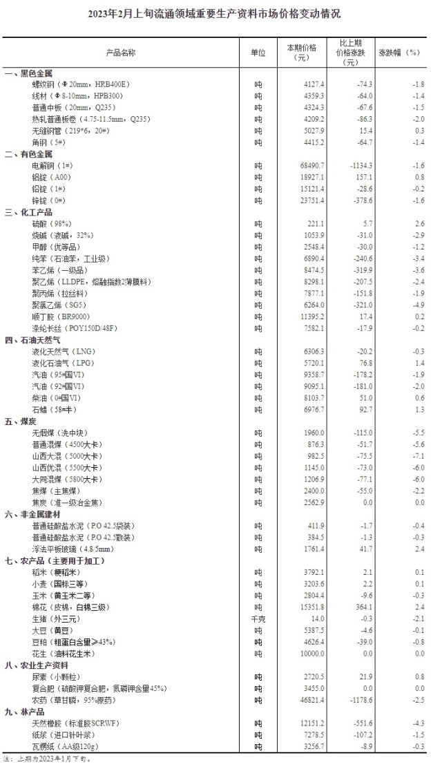 中新網(wǎng)2月14日電 據(jù)國家統(tǒng)計(jì)局網(wǎng)站14日消息,據(jù)對(duì)全國流通領(lǐng)域9大類50種重要生產(chǎn)資料市場價(jià)格的監(jiān)測顯示,2023年2月上旬與1月下旬相比,12種產(chǎn)品價(jià)格上漲,35種下降,3種持平。其中,生豬(外三元)價(jià)格為14元/千克,較1月下旬相比下降2.1%。(中新財(cái)經(jīng))