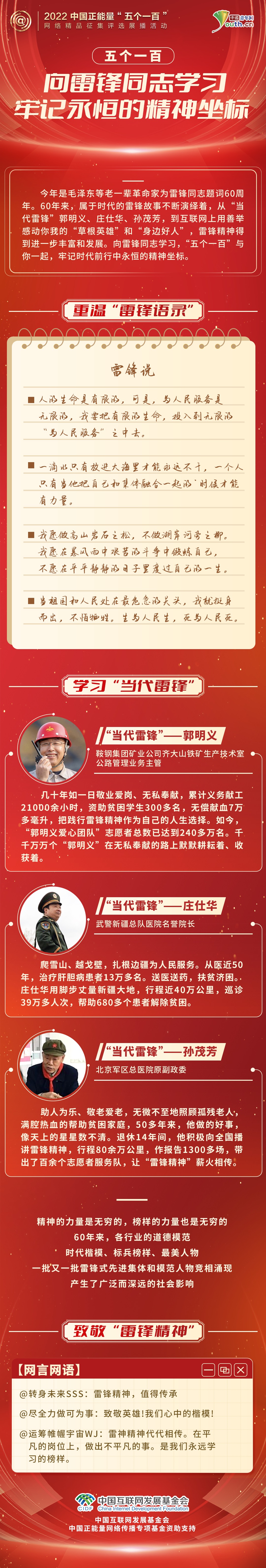 “五個一百”:向雷鋒同志學(xué)習(xí),牢記永恒的精神坐標(biāo)