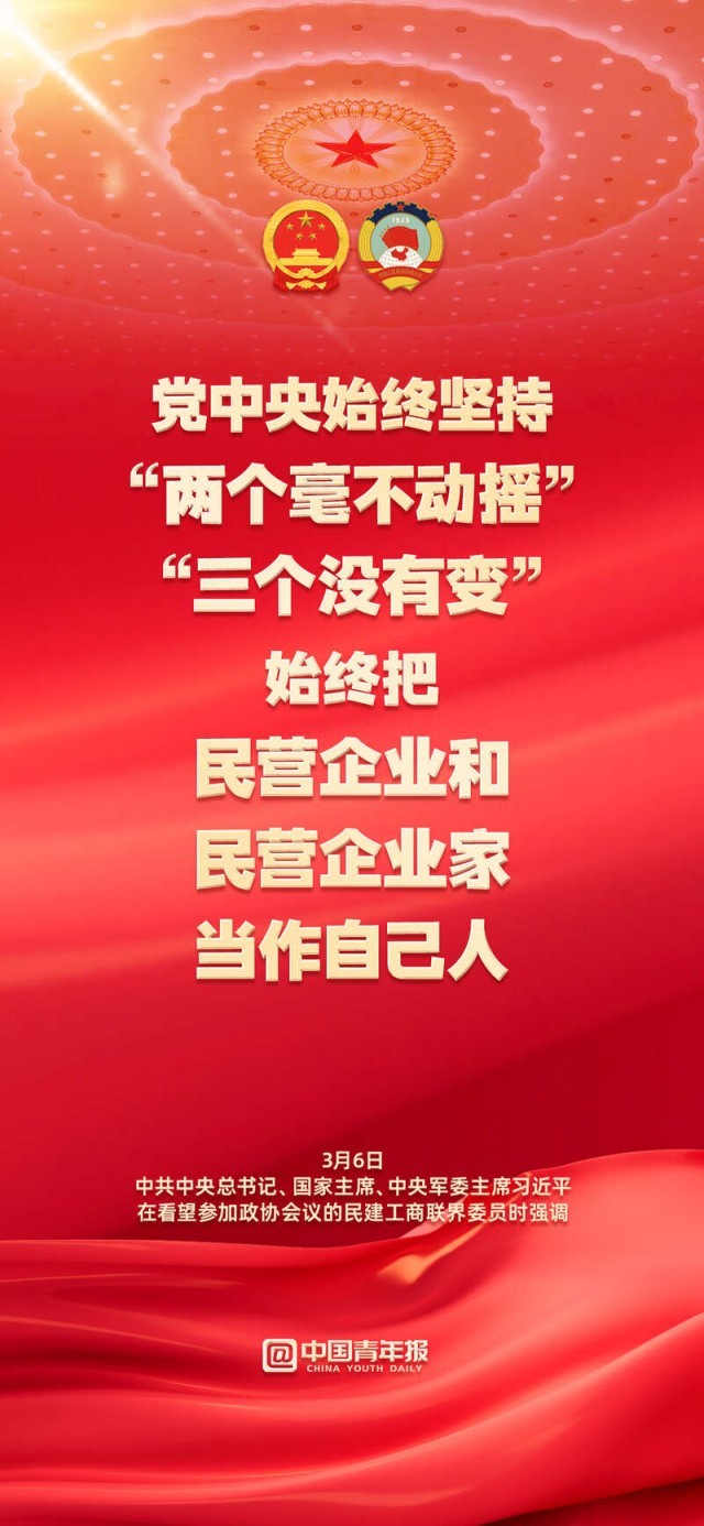 “始終把民營(yíng)企業(yè)和民營(yíng)企業(yè)家當(dāng)作自己人”;“無論是國(guó)有企業(yè)還是民營(yíng)企業(yè),都是促進(jìn)共同富裕的重要力量,都必須擔(dān)負(fù)促進(jìn)共同富裕的社會(huì)責(zé)任?!?月6日下午,習(xí)近平總書記在看望參加政協(xié)會(huì)議的民建工商聯(lián)界委員時(shí)強(qiáng)調(diào),要正確引導(dǎo)民營(yíng)經(jīng)濟(jì)健康發(fā)展高質(zhì)量發(fā)展。關(guān)于民營(yíng)企業(yè)和民營(yíng)企業(yè)家,總書記作出哪些重要論述,轉(zhuǎn)存金句,共同學(xué)習(xí)