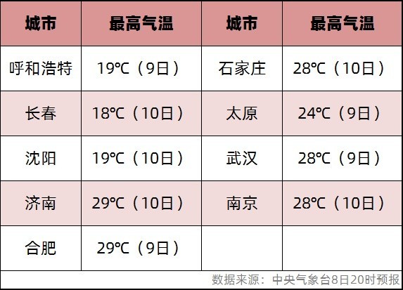 多地最高氣溫還將繼續(xù)突破紀(jì)錄。大城市中,呼和浩特、長春、沈陽、濟(jì)南、合肥氣溫都可能刷新當(dāng)?shù)?月上旬最高紀(jì)錄,石家莊、太原、武漢、南京等地也會(huì)經(jīng)歷同期少見的暖。