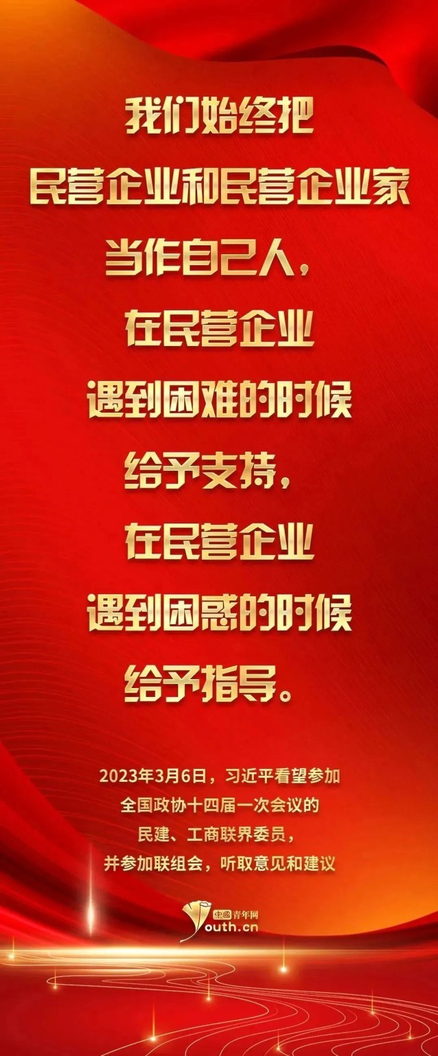 習(xí)總書記的講話為我國(guó)民營(yíng)經(jīng)濟(jì)高質(zhì)量發(fā)展樹立了信心、指明了方向。黨中央始終堅(jiān)持“兩個(gè)毫不動(dòng)搖”、“三個(gè)沒有變”,始終把民營(yíng)企業(yè)和民營(yíng)企業(yè)家當(dāng)作自己人。習(xí)總書記充分肯定了民營(yíng)經(jīng)濟(jì)的重要作用與成績(jī),表明了黨和國(guó)家支持并鼓勵(lì)民營(yíng)經(jīng)濟(jì)發(fā)展的堅(jiān)定決心,同時(shí)也對(duì)民營(yíng)經(jīng)濟(jì)高質(zhì)量發(fā)展提出了新要求。這都為民營(yíng)經(jīng)濟(jì)健康發(fā)展、高質(zhì)量發(fā)展提供了重要遵循,其中也有勉勵(lì)民營(yíng)經(jīng)濟(jì)再接再厲之意。