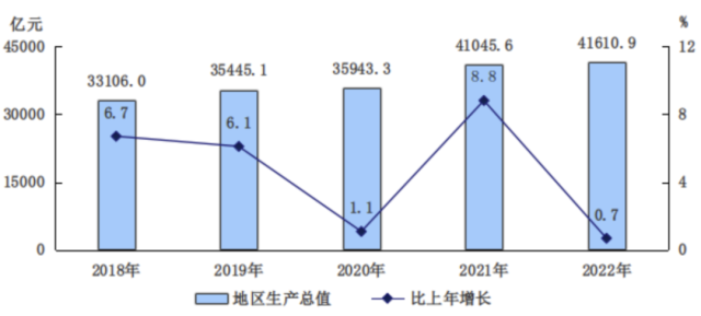 圖1 2018-2022年地區(qū)生產(chǎn)總值及增長速度