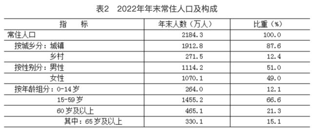 [3] 2022年常住人口有關(guān)數(shù)據(jù)為全國統(tǒng)一組織開展的2022年人口變動情況抽樣調(diào)查推算數(shù),調(diào)查標準時點為2022年11月1日零時。