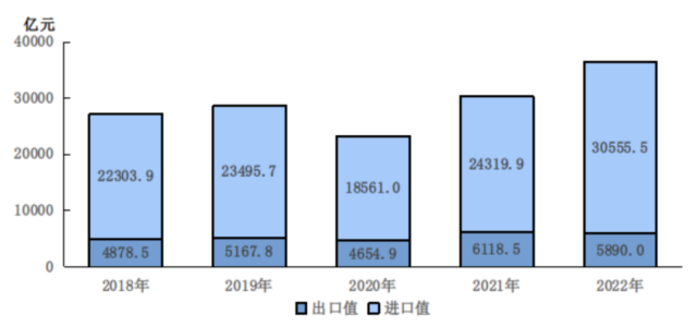 圖6 2018-2022年進口和出口總值