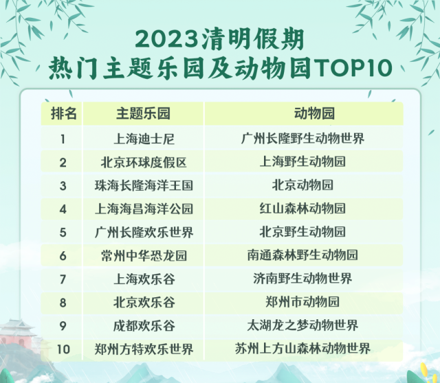 《報告》顯示,各地主題樂園、野生動物園、海洋館清明假期期間的預訂量靠前,圍繞一些知名主題樂園推出的親子一日游線路也深受歡迎。