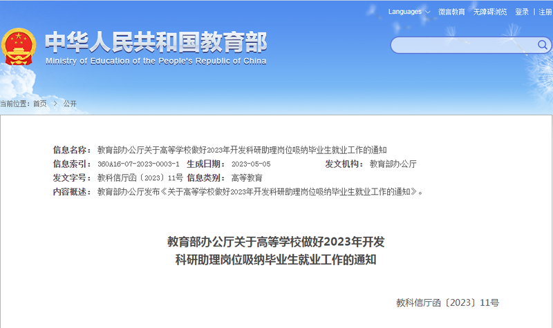 通知指出,充分開發(fā)利用科研助理崗位。各單位要積極吸納應屆畢業(yè)生從事博士后、科研輔助研究、實驗技術、技術經(jīng)理人、學術助理和財務助理等科研助理工作,各高校建設的大學科技園、技術轉(zhuǎn)移中心等科技成果轉(zhuǎn)移轉(zhuǎn)化機構要積極吸納應屆畢業(yè)生從事科技成果轉(zhuǎn)移轉(zhuǎn)化工作,大幅擴大科研助理崗位。