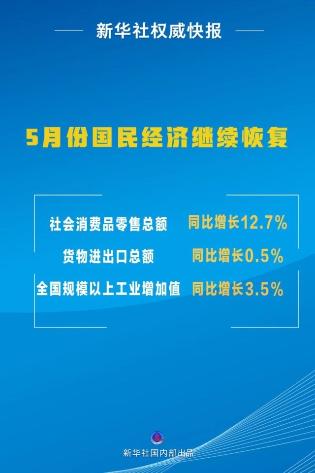 - 國家統(tǒng)計局:5月份國民經(jīng)濟延續(xù)恢復(fù)態(tài)勢