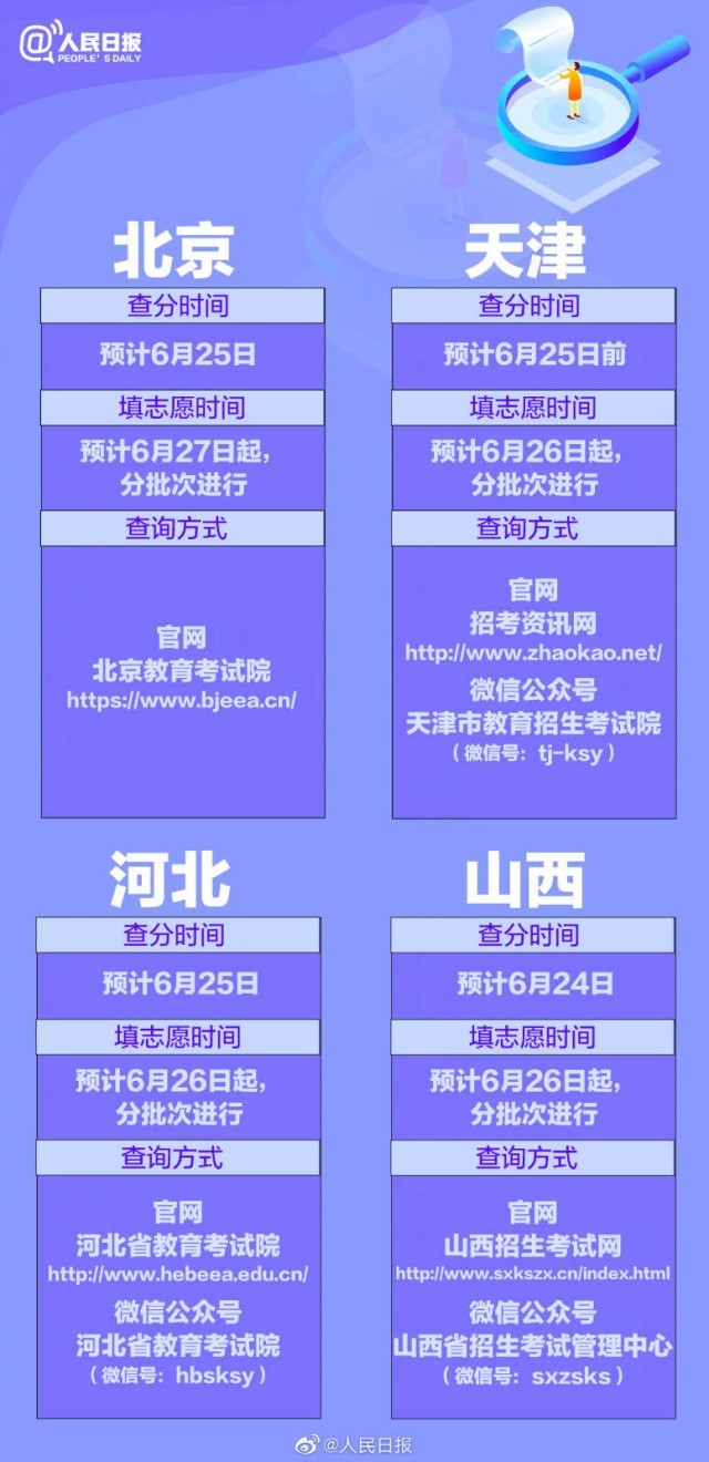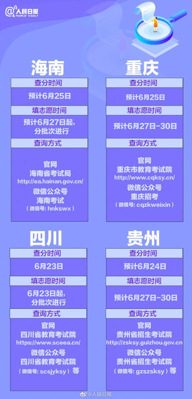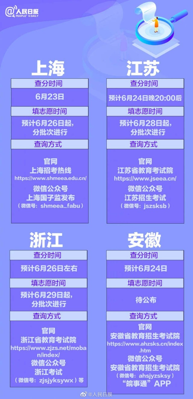 6月23日起,各地高考成績陸續(xù)公布,同時,多個省區(qū)市的志愿填報安排也已公布。@ 1291萬考生,你們準備好了嗎?31省份報志愿時間全匯總↓↓??忌鸢耦}名,愿劈波斬浪,繼續(xù)精彩!