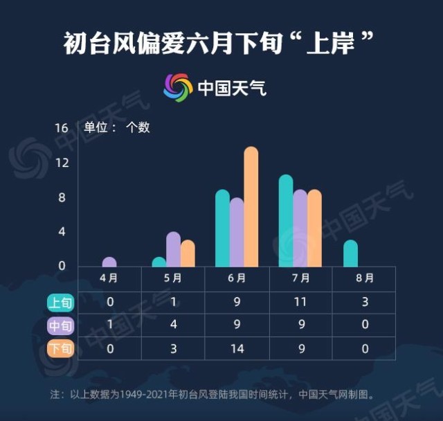 根據(jù)預(yù)報(bào),這個(gè)熱帶系統(tǒng)或?qū)⒂?月17日至18日左右在廣東到海南一帶沿海登陸。據(jù)中國天氣網(wǎng)大數(shù)據(jù)顯示,一般首個(gè)登陸我國的臺(tái)風(fēng)多集中在每年的6月至7月,其中,6月下旬登陸的比例最高,7月上旬登陸比例位列第二。