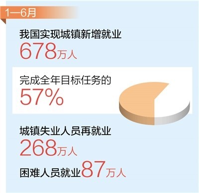 前6月,我國實現(xiàn)城鎮(zhèn)新增就業(yè)678萬人,完成全年目標任務(wù)的57% 就業(yè)形勢保持總體穩(wěn)定